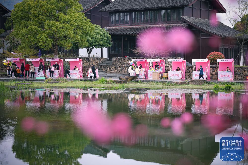 游客在浙江杭州丁兰街道皋城村的桃园内游园赏花(3月25日摄)。近年来,杭州丁兰街道皋城村在改善村容村貌、建设美丽乡村的基础上发展乡村旅游业,促进乡村文旅融合。新华社记者 江汉 摄