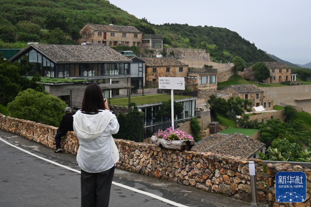 游客在浙江温岭市石塘镇海利村观光(6月7日摄)。近年来,海利村依托滨海风光,整合石屋资源,大力发展生态旅游,已成为石塘镇民宿最集中的区域,被誉为“中国最美渔村”。新华社记者 黄宗治 摄