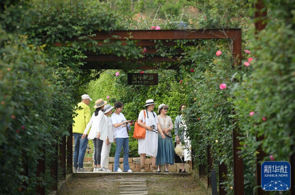 游客在浙江湖州市埭溪镇玫瑰庄园游览(4月20日摄)。新华社记者 翁忻旸 摄