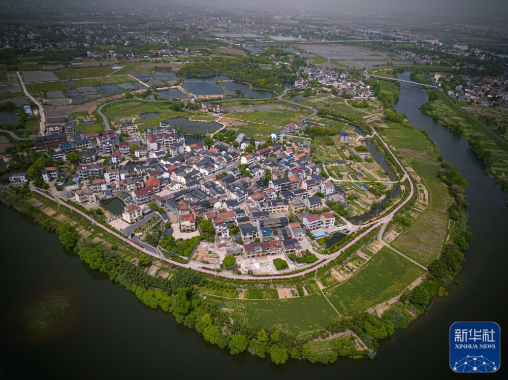 空中俯瞰浙江湖州市长兴县煤山镇新川村(5月24日摄,无人机照片)。该村先后获评全国民主法治示范村、浙江省全面小康建设示范村、浙江省卫生村、浙江省美丽乡村特色精品村、浙江省AAA级景区村庄等。新华社记者 徐昱 摄