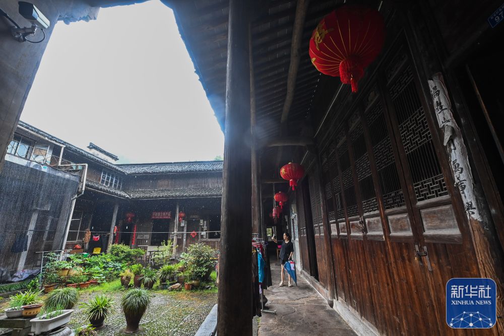 6月8日,游客在浙江诸暨市斯宅村的千柱屋景区内游览。近年来,当地对古民居建筑进行有效保护和修复,积极弘扬古村落文化特色,打造优美人居环境,实现村庄发展与历史文化环境的融合。新华社记者 徐昱 摄