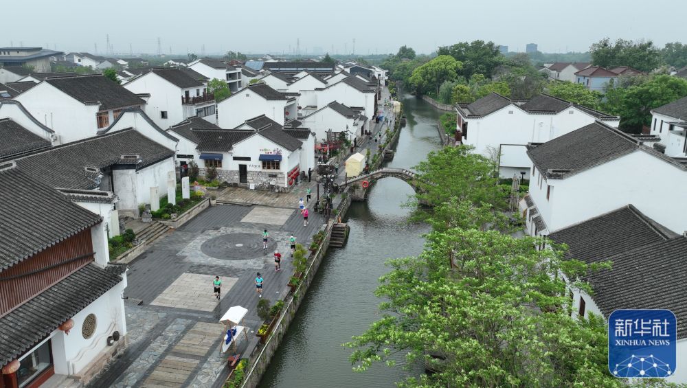 在浙江湖州市八里店镇潞村,人们在参加一场乡村马拉松比赛(4月29日摄)。新华社记者 翁忻旸 摄