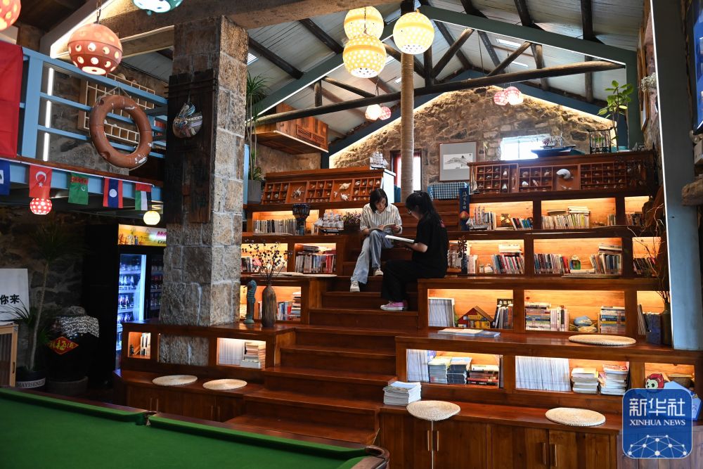游客在浙江温岭市石塘镇海利村一家民宿内阅读书籍(6月7日摄)。近年来,海利村依托滨海风光,整合石屋资源,大力发展生态旅游,已成为石塘镇民宿最集中的区域,被誉为“中国最美渔村”。新华社记者 黄宗治 摄